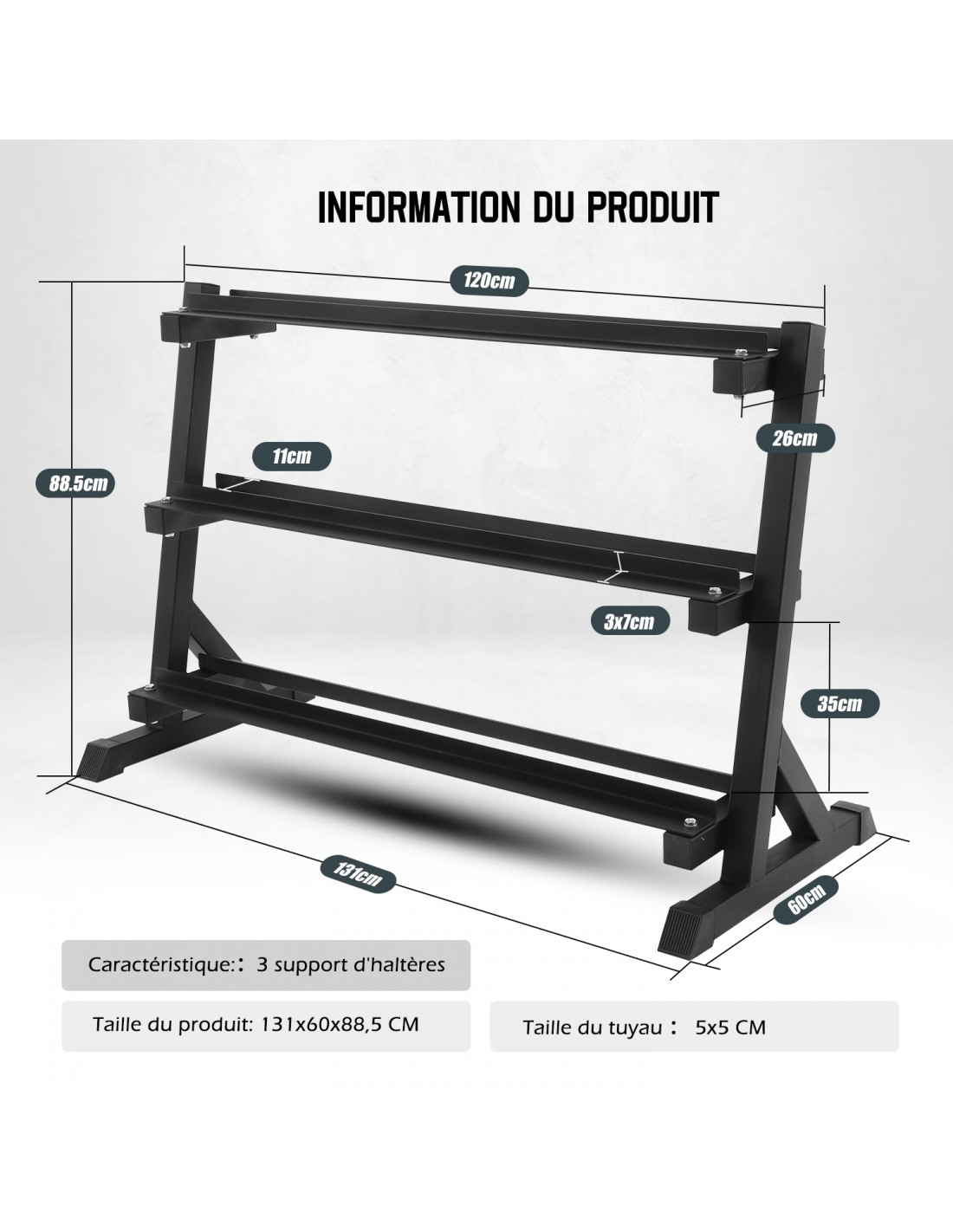 Caractéristiques du rack à haltères homegym en acier :