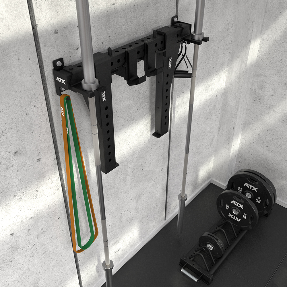 Conçu spécialement pour accueillir les J-hooks, bras de sécurité, barres de musculation et divers accessoires, ce support de rangement ATX à fixation murale permet de ranger efficacement tout le matériel sans encombrer le sol.
