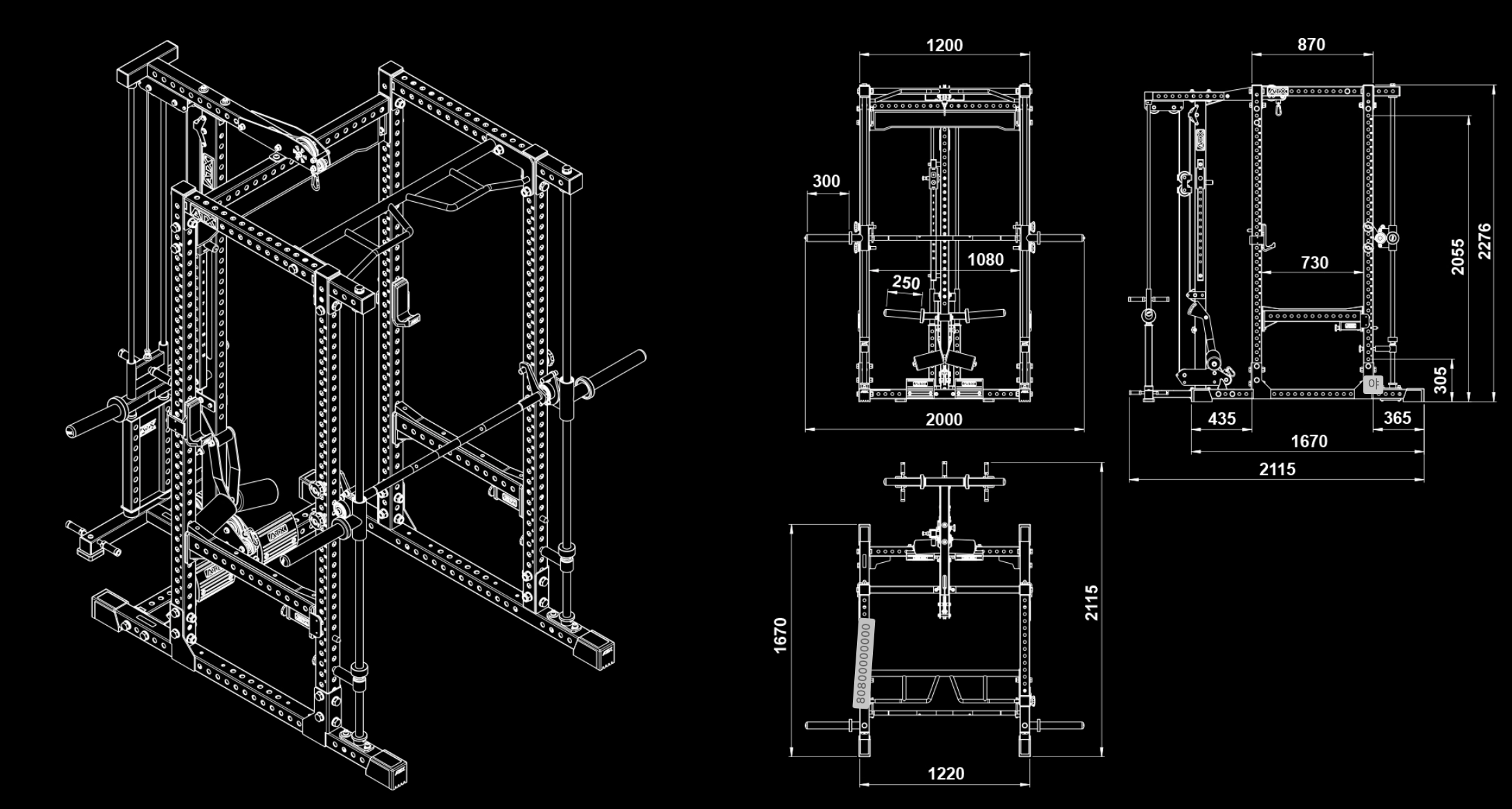 - Rack à squat avec station de tirage à charge libre et option barre guidée