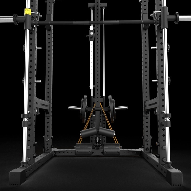 Rack à squat ATX complet avec poulie à charge libre et barre guidée - Barre multigrip de traction intégrée - Série 700