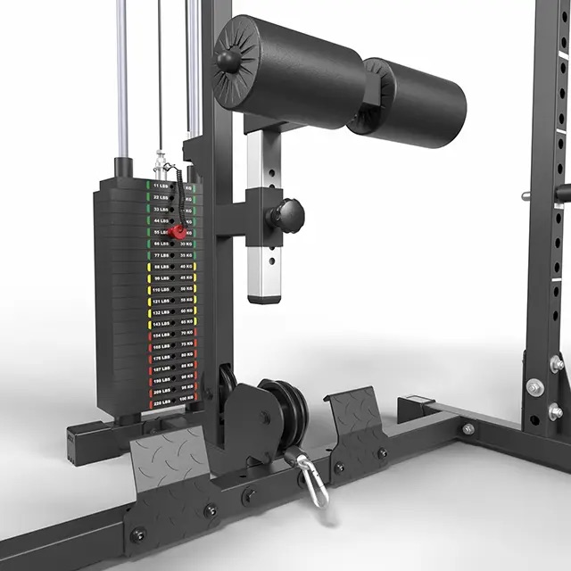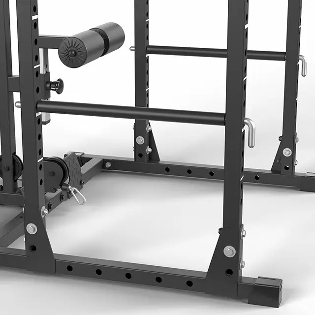 La largeur et la profondeur de la cage à squat avec poulie sont conformes aux normes internationales, garantissant un entraînement avec une barre olympique standard.
