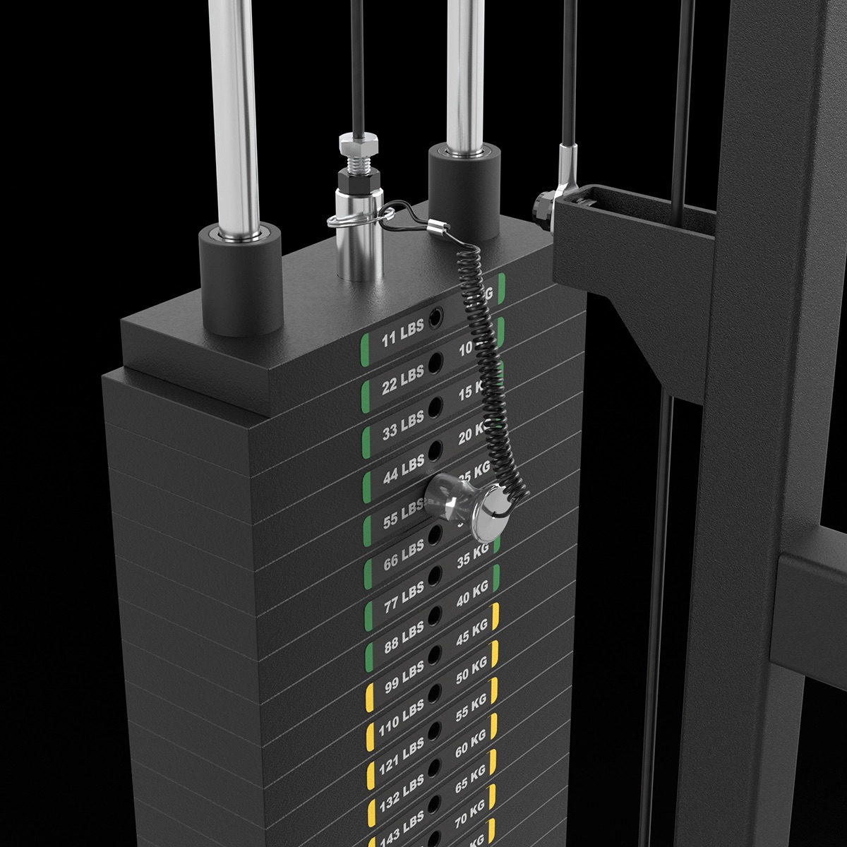 La station de traction avec poids enfichables de 100 kg assure un entraînement précis et fluide grâce à un transfert de poids direct 1:1, des arbres de guidage en acier massif et des poulies à roulement à billes. Les repose-jambes réglables, rouleaux en uréthane et repose-pieds antidérapants garantissent confort et sécurité pour tous les exercices de tirage, permettant des mouvements de traction du haut et du bas sans transformation.