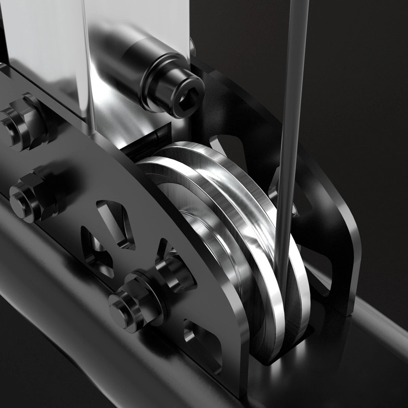 La fluidité exceptionnelle de cette machine cross over ATX repose sur un guidage de câble parfaitement optimisé associé à des rouleaux en aluminium montés sur roulements à billes, assurant une traction régulière, silencieuse et sans à-coups.
