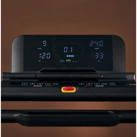 Fiche technique du tapis de running puissant jusqu'à 24 km/h avec pente réglable - Système intelligent de pliage :