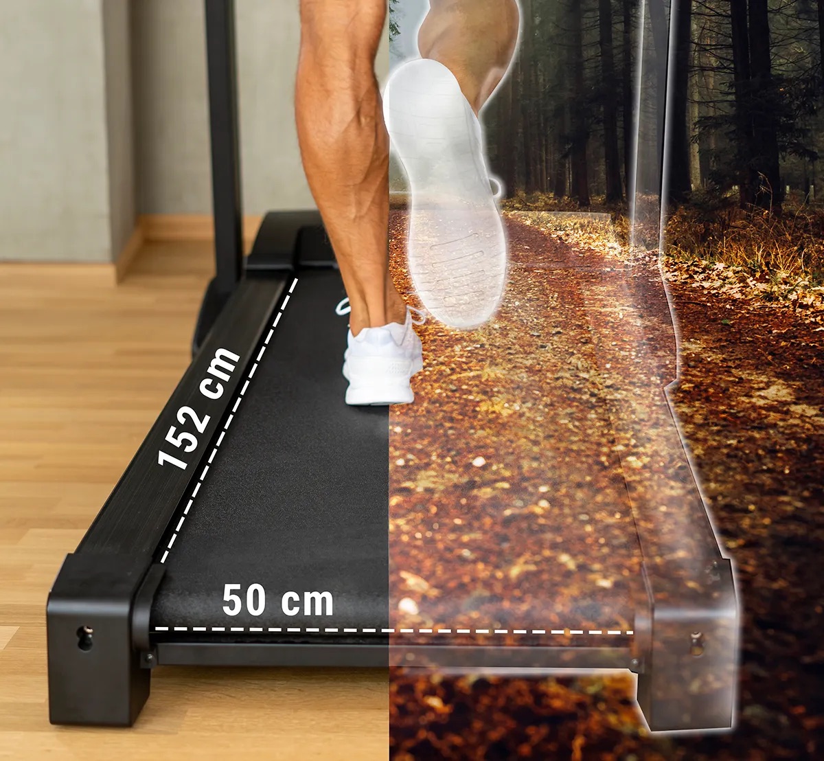 La surface de course extra large de 152 x 50 cm offre un espace confortable et sécurisé, même lors des séances les plus intenses.