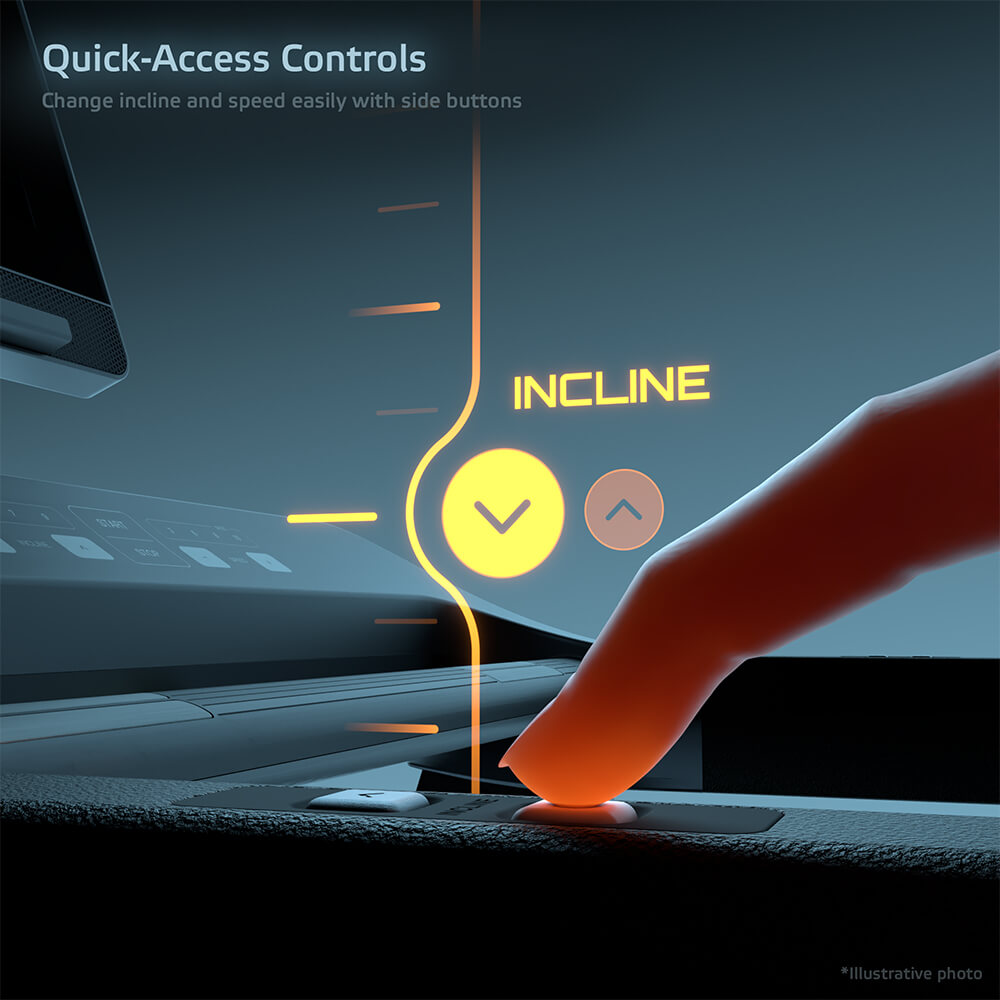 La connectivité Bluetooth, la recharge sans fil et USB, ainsi que les commandes tactiles sur les poignées du tapis roulant permettent un réglage rapide et intuitif de la vitesse et de l’inclinaison.