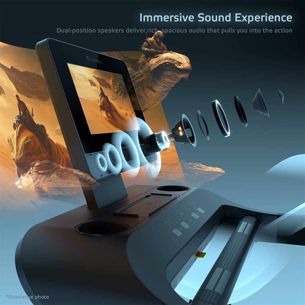 - Écran TFT 15,6 pouces avec applications préinstallées : YouTube, Netflix, Spotify, Prime Video, Chrome, Facebook, Instagram, Twitter, Amazon Music