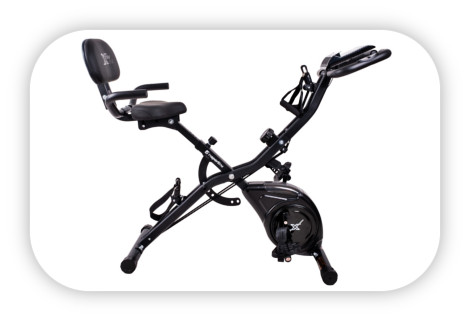 Vélo d'appartement pliable Xbike Max avec volant d'inertie de 3 kg et élastiques de résistance pour bras et jambes