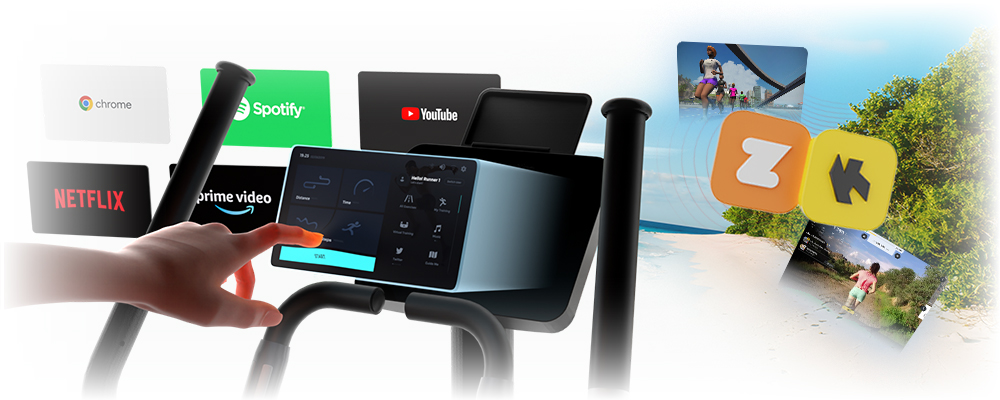 Le vélo elliptique de cardio brille aussi par sa connectivité moderne. Il est équipé d’un écran tactile TFT de 10,1", clair et intuitif, avec des applications préinstallées pour vous accompagner dans vos entraînements.