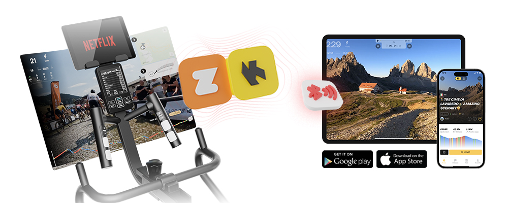 - Technologie Kinomap, Zwift, inCondi, Fitshow